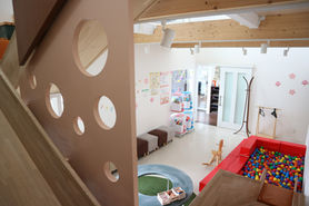 子供たちが長期間にわたる通院が不可欠な矯正治療を少しでも楽しめるよう院内に広いキッズルームをご用意しております。「治療中にじっと我慢してがんばる子供たちには、それ以外の時間でなるべくストレスをかけたくない」という思いから、できる限り広くスペースをとって設計しました。すぐ隣が診療室になっており、親御さんたちはキッズルームの窓から治療中の子供たちの様子を見ることができます。(院長)